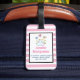 Marque de bagage personnalisée avec un arrière - plan rayé rose et blanc. Un cadre blanc avec une bordure rose superposée avec votre nom personnalisé à l'intérieur. A l'intérieur du cadre une illustration d'une mère et un bébé lapin debout ensemble. Bouches jaunes dans l'arrière - plan. Des papillons géants. Le dos a de la place pour vous de mettre vos informations personnalisées aussi.