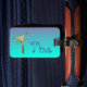 Ce splendide porte-bagage présente un arrière - plan bleu et violet à l'ombre, un joli palmier vert aquarelle et personnalisation pour votre nom et vos informations.