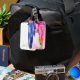 Cette étiquette de bagage contient de l'art de la mode.
