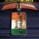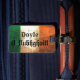 Belle étiquette à bagages caractéristiques Doyle nom de famille (version anglaise et irlandaise) en police de caractères fantaisie sur l'arrière - plan drapeau irlandais en détresse