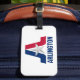 Balise de bagage avec le drapeau d'Arlington, Texas. Un drapeau blanc avec une lettre bleue et rouge A et une étoile argentée au centre