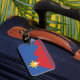 Bagage Tag avec un design avec le drapeau de Pocatello, Idaho. Un drapeau bleu avec des montagnes rouges et une étoile jaune