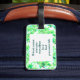 Ce tag mignon et drôle a un arrière - plan motif vert fantaisiste des deux côtés. L'avant dit Ne pars pas sans moi ! dans une teinte assortie de turquoise foncé et d'une police amusante. L'arrière a un espace réservé blanc pour votre texte personnalisé dans une police différente mais la même couleur turquoise foncée. Ce design est entièrement personnalisable.