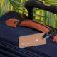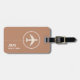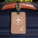 An elegant item with the graphic image of a white airplane in a circle, on terracotta brown background personalized with your name and initials... to identify your belongings.