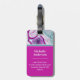 Élégant Turquoise Magenta Pierre Monogramme Initial Bagage Tag. Les cristaux d'agate et les géodes continuent d'être une tendance préférée! Cette impression présente et une image rapprochée d'une pierre de géode turquoise et violette (magenta), avec des petits cristaux et des bandes blanches. Accentué par un blocage coloré dynamique pour lui donner un look moderne et tendance. Ajoutez votre initiale pour en faire la vôtre.