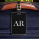 Étiquette de bagage élégante à monogramme noir – Personnalisée avec vos deux initiales. Améliorez vos accessoires de voyage avec cette étiquette de bagage élégante et moderne, dotée d'un fond noir épuré et d'un design personnalisable. Personnalisez-la avec vos initiales de monogramme et les détails d'adresse au verso en typographie blanche élégante. Le design saisissant assure que vos bagages soient facilement identifiables tout en ajoutant une touche d'élégance à vos voyages.
