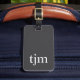 Elégant design entièrement personnalisable étiquette de bagages avec arrière - plan gris foncé, blanc gras monogramme. Ajoutez votre code QR avec vos coordonnées. Les coordonnées instantanément accessibles signifient que votre sac connaît toujours son chemin de retour :)