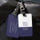 Étiquette À Bagage Élégant Monogramme Marine Bleu