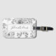 Étiquette À Bagage Élégant noir blanc Flore Design Nom Script