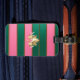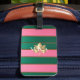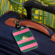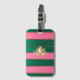 Étiquette À Bagage Élégant rose et vert rayures Monogramme