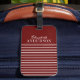 Une élégante étiquette à bagages rayés rouge/marron et blanc. Ajoutez votre prénom dans une police de script et votre nom dans une police serif. Un tag chic et élégant pour vos bagages. Conçu pour vous par Blackberry Boulevard. Vient dans une variété de couleurs.