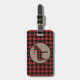 L'arrière - plan sur cette étiquette de bagage est un motif rouge et noir de buffle plaid. Au centre se trouve une bannière de cercle bronzée avec un elfe en silhouette plaid rouge et noir assorti. Le dos de la balise est noir avec deux champs pour que votre texte personnalisé facile à lire en blanc.