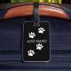 Empreintes de pattes de chien de dessin en blanc sur arrière - plan noir. Balises de bagages personnalisées. Modifier le nom pour customiser l'idée cadeau pour les amoureux de les chiens.