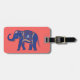 Le corail élégant a coloré l'étiquette de bagage avec des graphiques d'un éléphant bleu avec des accents colorés de fleur. Le dos de l'étiquette a le texte fait sur commande bleu prêt à personnaliser.