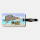 Tenez-vous dans le carrousel de bagages avec une étiquette de bagage de pêche qui comporte un arrière - plan de plage, un casquette de pêche avec des attraits de pêche, une canne à pêche, le clipart de l'homme avec des poissons et la boîte à leurres. Le texte est installé pour votre nom, numéro d'adresse et de téléphone ou n'importe quel texte que vous voulez. Cadeau parfait pour le pêcheur dans votre vie ! Courroie en cuir de bagage incluse.