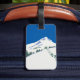 Cette étiquette moderne de bagage comporte le paysage d'hiver d'une station de sports d'hiver. Cette belle scène montre des montagnes neigeuses, et une remonte-pente sur un ciel bleu intense. Des pins peuvent être vus ont dispersé autour. Cette conception attirante pourtant élégante est grande pour un amant de ski ou un enthousiaste de ski.