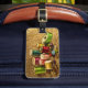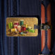 Faites votre bagage se tenir sur un carrousel d'aéroport avec des conceptions uniques d'étiquette ! Cette étiquette colorée de bagage de beaux-arts montre les outils de l'ouvrière couturière. Bobines lumineuses de fil dans des couleurs d'arc-en-ciel de support vert, rouge, rose, de turquoise, de jaune, d'or, bleu et orange près d'une bande, d'un dé, des boutons et des goupilles de mesure. Tous sont placés sur une image d'un arrière - plan brun de motif de toile de jute. Customisez le texte du verso avec vos informations personnelles.