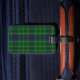 Étiquette élégante de bagage faite dans le motif vert, bleu, rouge, noir, et blanc écossais traditionnel de plaid de tartan de Duncan de clan. Un secteur vert des textes, sur l'avant a le texte blanc prêt à personnaliser avec votre information. La manière parfaite de repérer votre bagage, et fait une grande idée de cadeau.
