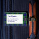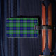Étiquette élégante de bagage faite dans le motif écossais bleu, vert, et blanc traditionnel de plaid de tartan de Douglas de clan. Un secteur blanc encadré par vert des textes, a le texte bleu prêt à personnaliser avec votre information. La manière parfaite de repérer votre bagage, et fait une grande idée de cadeau.