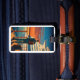en 1950, Michael Knudsen, un jeune scandinave, se tenant à la main avec son sac à dos et son passeport, regarde vers un horizon lointain rempli d'opportunités. Illustration du majestueux bateau de croisière transatlantique qui part de Scandinavie avec Michael à bord, avec les lumières de la ville en arrière - plan.