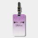 Marque de bagage personnalisée avec un design élégant et tendance. L'arrière - plan est un dégradé violet avec une image de fausse parties scintillant scintillante qui descend du haut. Une paire de cils mignons ceinturés sous l'image de la parties scintillant.