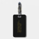 Cette étiquette à bagages élégante comporte un arrière - plan noir, avec une fausse couronne de laurier d'or qui contient votre monogramme. Personnalisez les deux côtés avec vos informations.