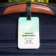 Une étiquette à bagages avec une bordure abstraite le long du dessus avec des couleurs tourbillonnant vertes et bleues. Un design doux et estival. Une lumière croise la texture derrière l'image.