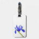Une photographie d'une fleur d'iris pourpre et jaune sur un fond blanc.