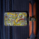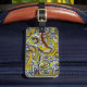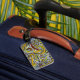 Étiquette Fossile-Unique de bagage avec le griffonnage original d'encre d'art abstrait dans des tons audacieux de la terre