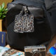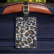 Cette étiquette de bagage originale se distingue par un motif empreinte de léopard moelleux. Le design de ce tag cool et très utile est un poster de animal unique qui se démarque vraiment et reflète le côté amusant de votre personnalité. Les taches de léopard noir et bronzé semblent cool contre l'arrière - plan blanc cassé.