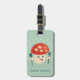Marque de bagage de champignon drôle avec un vecteur illustration d'un personnage de champignon de dessin animé empoisonné qui est empoisonné en mangeant trop de son propre genre et nom et adresse personnalisable sur ses côtés de et de l'arrière.