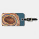 Élégante étiquette à bagages monogrammed avec une tranche de géode agate sur un arrière - plan bleu. Le modèle est configuré pour vous permettre d'ajouter vos initiales. Cette aquarelle est composée d'agate semi-précieux, une pierre unique avec de beaux bandages naturels connus ou ses propriétés spirituelles de protection et de guérison. Le design a une palette de couleurs d'argile terre cuite, bleu, ocre et gris avec une profonde géométrie brun cuivre. Parcourez notre magasin pour trouver les bagages et accessoires de voyage correspondants et coordonnés.