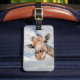 Porte bagage avec vue rapprochée d'une curieuse girafe.
