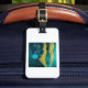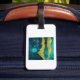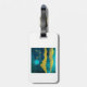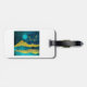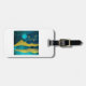 Paysage montagnard Abstrait aux tons audacieux d'or, de cyan et de bleu avec un lever de lune, des étoiles et des oiseaux.