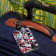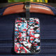 Un graffiti de style rétro signe de paix sur des étiquettes de bagages.