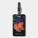 Cette étiquette à bagages spectaculaire présente une fleur d'Hibiscus tropical orangé avec des fleurs violettes et des feuilles verts. Cette fleur tropicale vibrante est exposée sur un noir frappant. Sentez les Tropiques de cette florale vibrante, vive et colorée. Personnalisez facilement votre nom, votre numéro de contact et toute information supplémentaire. Photo botanique originale de JLW_PHOTOGRAPHY