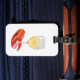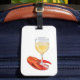 Balise de bagage illustrant une griffe de homard autour de la tige d'un verre de vin blanc. Tag a une manche pour une carte d'information de l'autre côté. Copyright de l'oeuvre : Dominic A. White. Tous droits réservés.