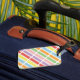 Geometric linéaire, rectangle, striped pattern of rainbow pastel hues of blue, orange, vert, rose, purple, rouge et jaune.