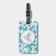 Étiquette À Bagage Imprimer Damas monogrammes bleu océan