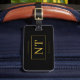 Élégante étiquette de bagages monogramme. Le design minimaliste présente vos initiales dans un cadre doré élégant, dressé contre un arrière - plan noir sophistiqué avec les coordonnées à l'arrière.