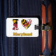 Leuke bagagelabel met de tekst : i love Maryland (i heart Maryland) Het hart is met de vlag van de staat Maryland. Kleuren : zwart, geel, rood en wit.