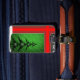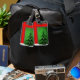 Arbre d'hiver de Noël avec une bordure rouge croisée et un arbre de tatouage en silhouette noire.