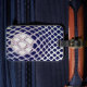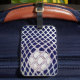 Sac à lacrosse ou étiquette de bagage avec treillis lax et conception de boule sur arrière - plan bleu marine.
