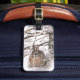 Faites votre bagage se tenir sur un carrousel d'aéroport avec des conceptions uniques d'étiquette ! Cette étiquette de bagage comporte une scène rurale typique d'hiver : un lapin brun velu doux de lapin avec de grandes oreilles est blotti sous un abri de recherche de pin de la tempête de neige. Customisez le verso avec vos informations personnelles.