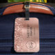 La parties scintillant d'or rose brillante imitation filée met en surbrillance sur le bord supérieur sur un faux or rose métallique et feuille rousse. Ajoutez un nom d'employé, un titre ou un autre texte ainsi qu'un logo d'entreprise à l'avant. Faites glisser un carte de visite à l'arrière. La parties scintillant et le papier d'aluminium sont créés avec des graphiques numériques qui s'impriment comme votre photo.
