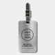 Marque de bagage professionnelle moderne avec le logo de votre entreprise ou de votre organisation et code QR contre un faux arrière - plan métallique en argent. Ajoutez un nom et un titre dans une simple typographie.