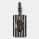 Tableau unique et noir et blanc, étiquette décorée d'un monogramme de bagage pour elle - cadre de tableau de Faux avec les bords roses de regard de parties scintillantes d'or et bouquet vintage rose couleur pêche de roses. Le nom décoré d'un monogramme a imprimé dans le lettrage rose élégant et assorti de couleur d'or. Arrière - plan noir et blanc moderne de rayures avec le motif de pois métallique d'or rose de faux. Le dos est noir solide avec l'information de contact personnalisée pour le bagage perdu. Note : Toutes les images sont imprimées. Parties scintillantes, tableau, ou confettis non réels en métal. Beau cadeau de retraite pour le professeur.