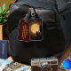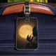 Faites ressortir vos bagages sur un carrousel d'aéroport avec des étiquettes uniques ! C'est l'automne, et une lune jaune doré et lumineuse s'est élevée derrière les silhouettes noires de feuilles soufflant dans la brise sur cette étiquette de bagage photographique d'art dramatique. L'arrière - plan est illuminée dans les tons orange, or et marron pour créer un motif abstrait dans un motif asiatique. L'inverse a un arrière - plan marron pour vos renseignements personnels personnalisables.