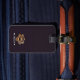 This modern luggage tag design features a rich black background, with your initials in bold white for a simple and elegant, yet professional look.