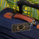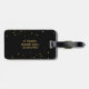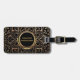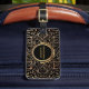 Chic bagage en noir et or monogrammé pour elle. Style bohème élégant. Beau mandala floral qui ressemble à de la feuille d'or recouvre le devant sur un arrière - plan noir. Le nom monogramme en teinte or, qui peut être modifié ou couleur de texte, est centré sur un cercle d'effet doré noir et brillant. Le dos a un arrière - plan noir avec un faux confetti en feuille d'or bordant le haut et le bas. modèle de texte personnalisable en retour pour ajouter un numéro de téléphone ou d'autres informations de contact. Un bagage élégant et tendance pour elle.